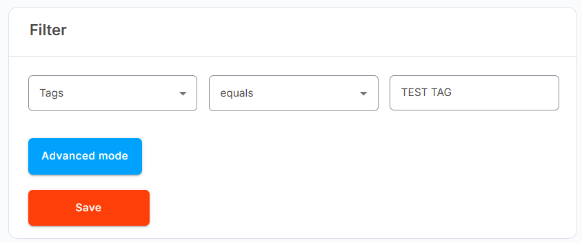 1. For example, a possible filter, shown below, reads as such: “Only a created/updated Lead from Sierra Interactive into Homebot if the Lead has the tag "TEST TAG".