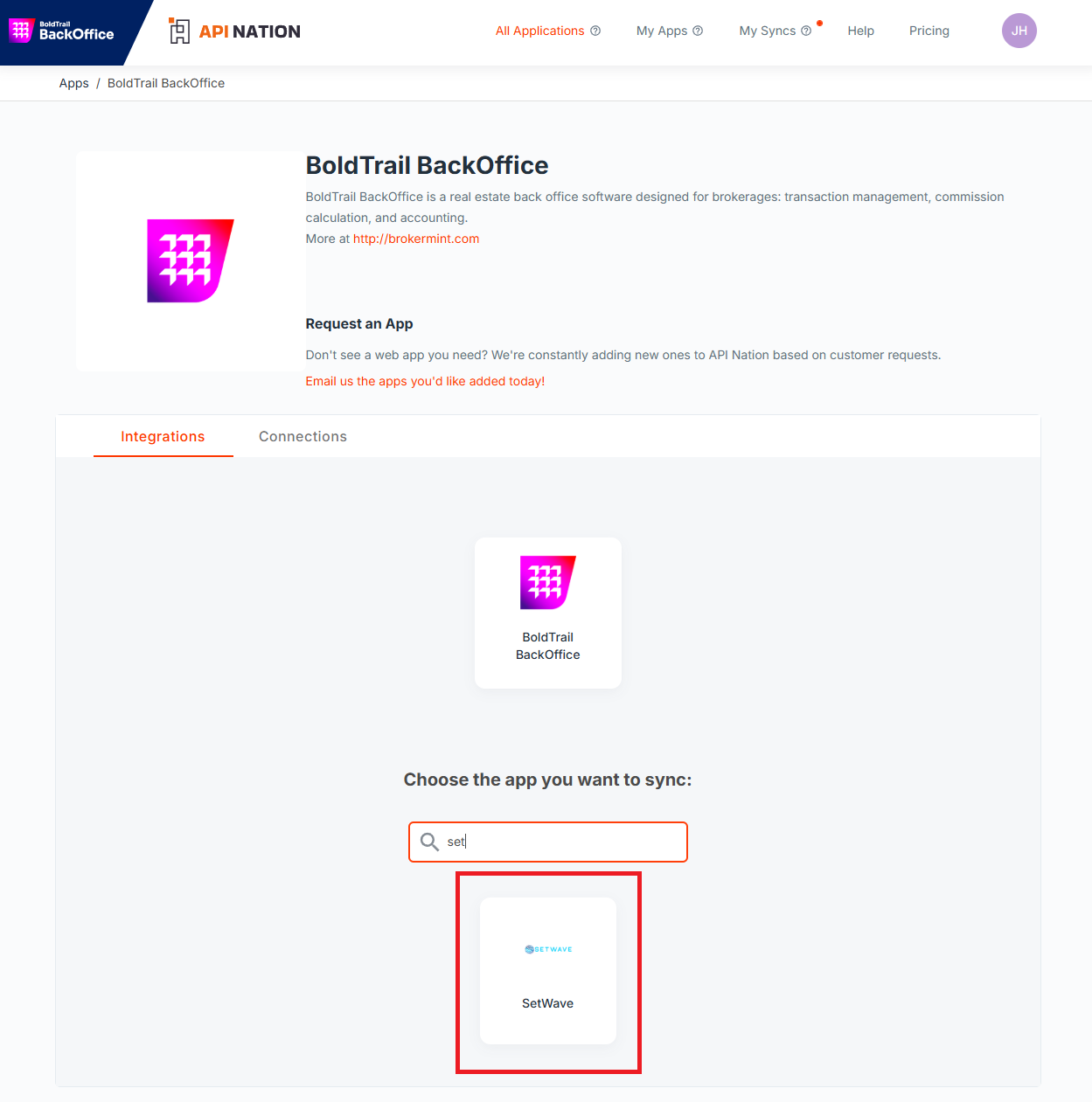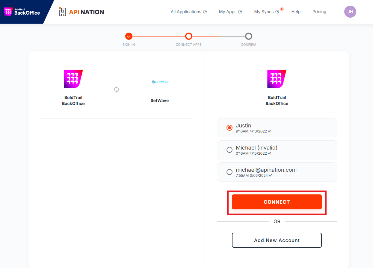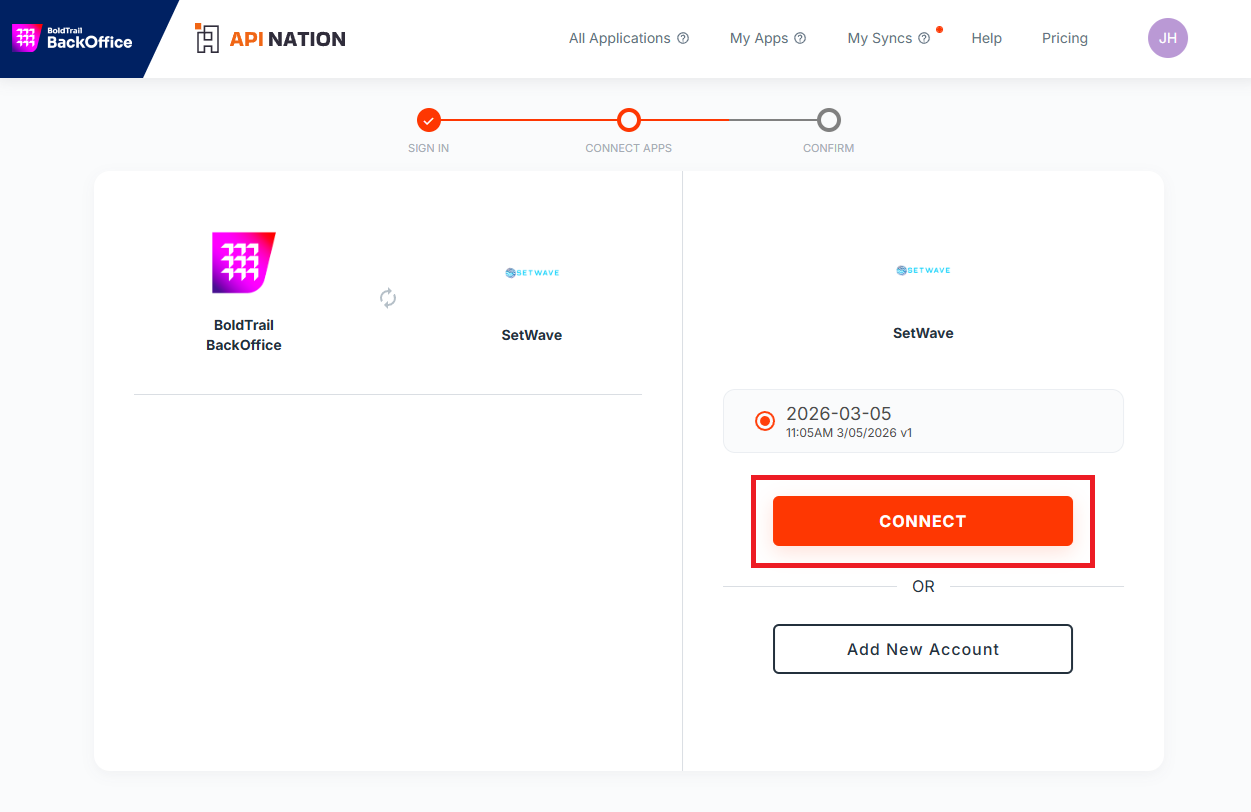 - Select your desired Boldtrail Backoffice connection and press "Connect".