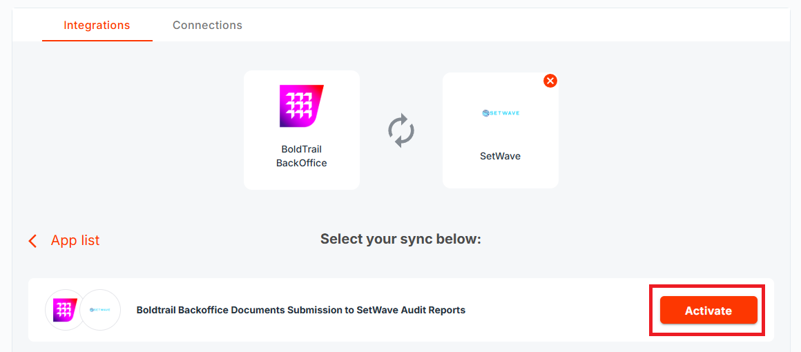 - Press "Activate" on "Boldtrail Backoffice Documents Submission to SetWave Audit Reports".