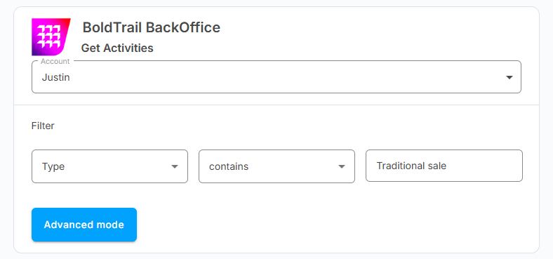 Your sync can be customized to only allow specific events through. If you wish to append more than one rule, select "Advanced Mode" and "Add Filter". Each time this "Add Filter" is pressed, an additional requirement is added to the Documents that are permitted to sync over.