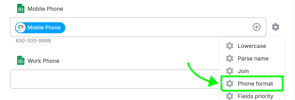 In your workflow's Field Mappings, locate the phone number field mapping.