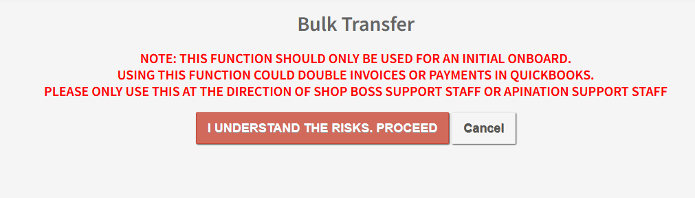 The Shop Boss + QuickBooks integration automatically syncs your Repair Orders, Part Sale Orders, and Payments into QB as Invoices and Payments. The Bulk Transfer tool allows you to manually push batches of transactions from Shop Boss to QB.