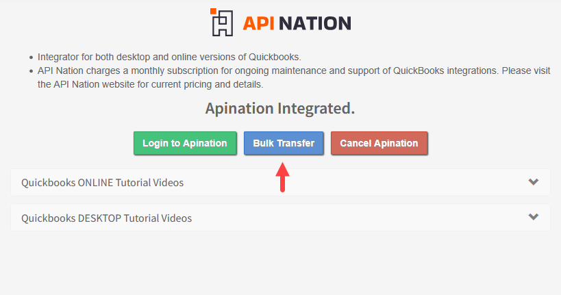 Income Account must be configured — Before running a Bulk Transfer, ensure your Income Account is selected in the workflow settings at my.apination.com/workflows. If it is not set, invoices will fail to create in QBO with the error