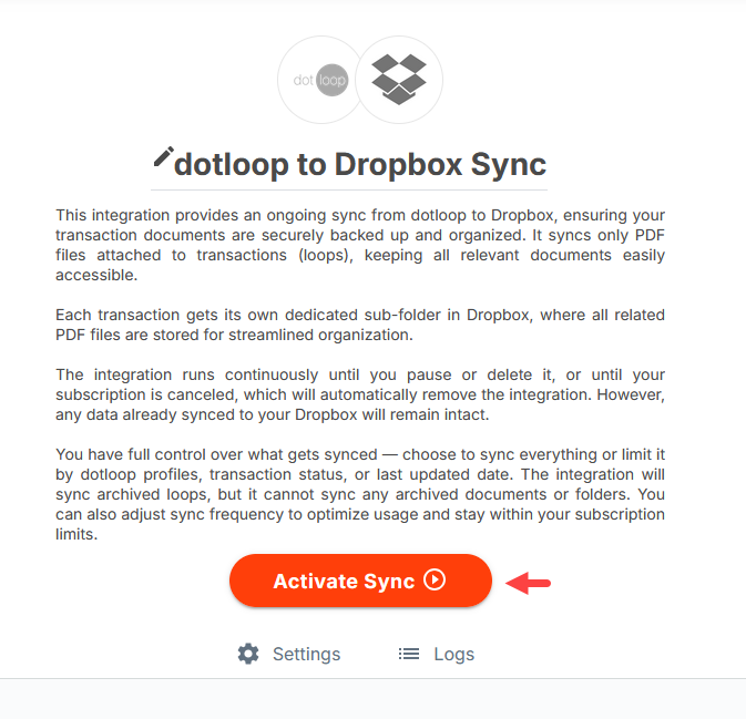These next steps will walk you through configuring your dotloop and Dropbox settings before turning on the integration.